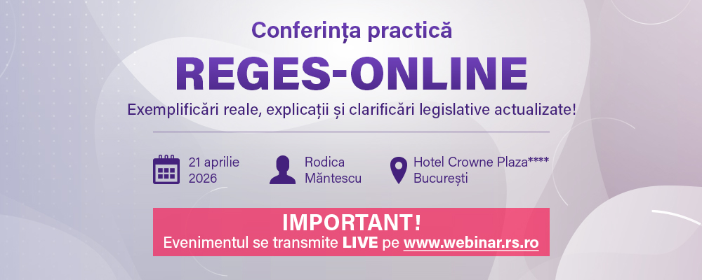 Eveniment: Conferinta practica REGES-ONLINE Lector: consilier juridic Rodica Mantescu Conditii: conexiune la internet