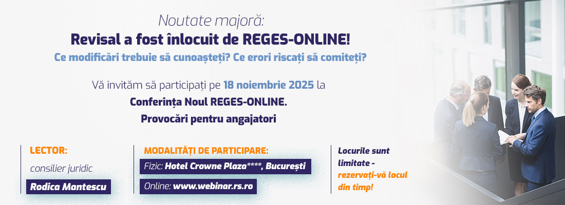 Va invitam in data de18 noiembrie sa participati la evenimentul Noul REGES-ONLINE. Provocari pentru angajatori, in cadrul caruia lectorul